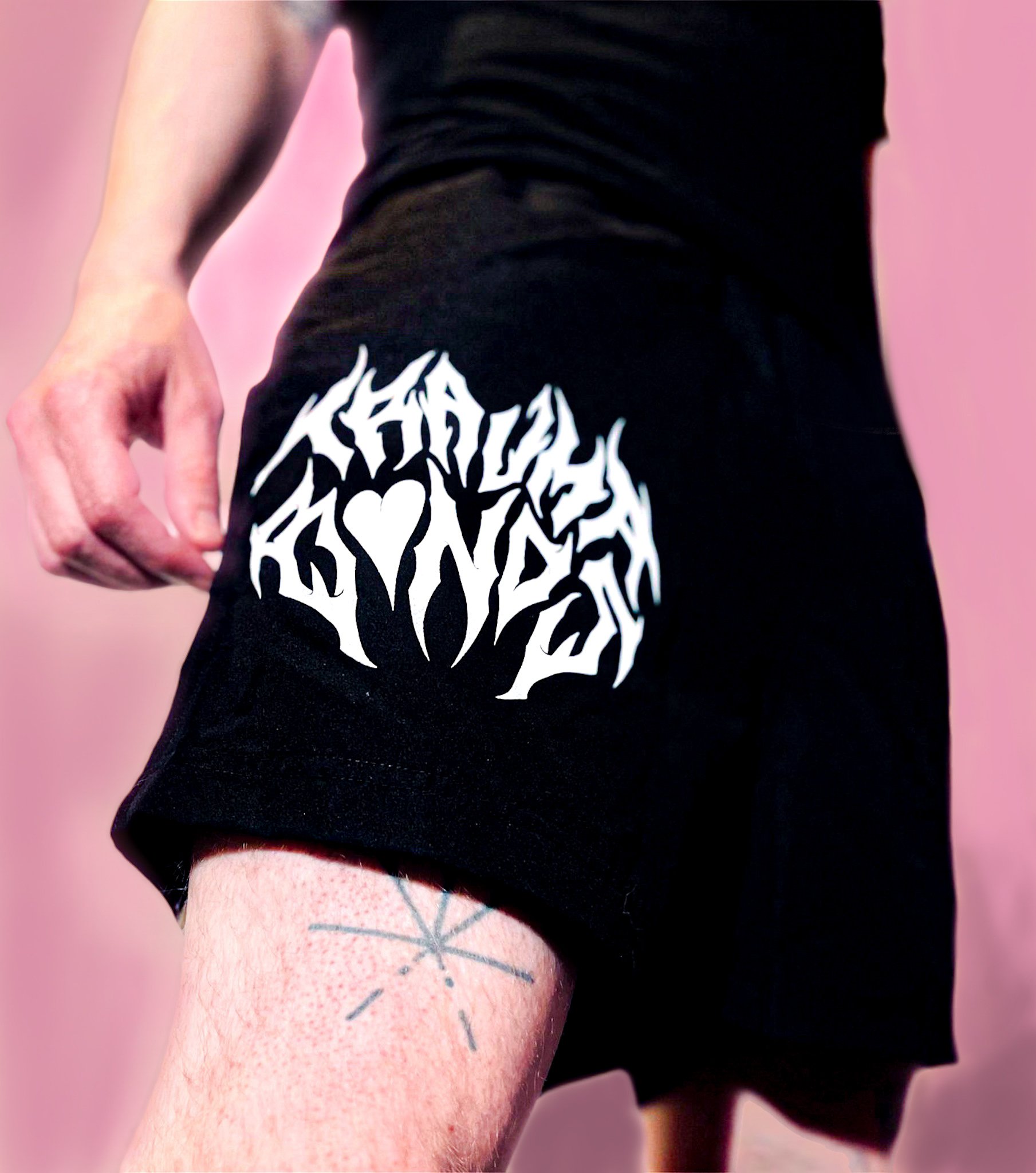 Athletic black shorts with printed logo.