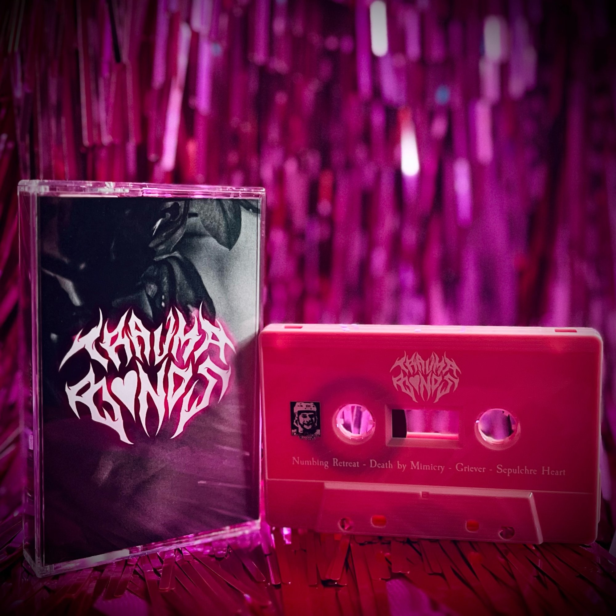 Numbing Retreat, Griever, Death by Mimicry and Sepulchre Heart on a cassette with full print J-Card. Made possible by Keep Chripin' Records